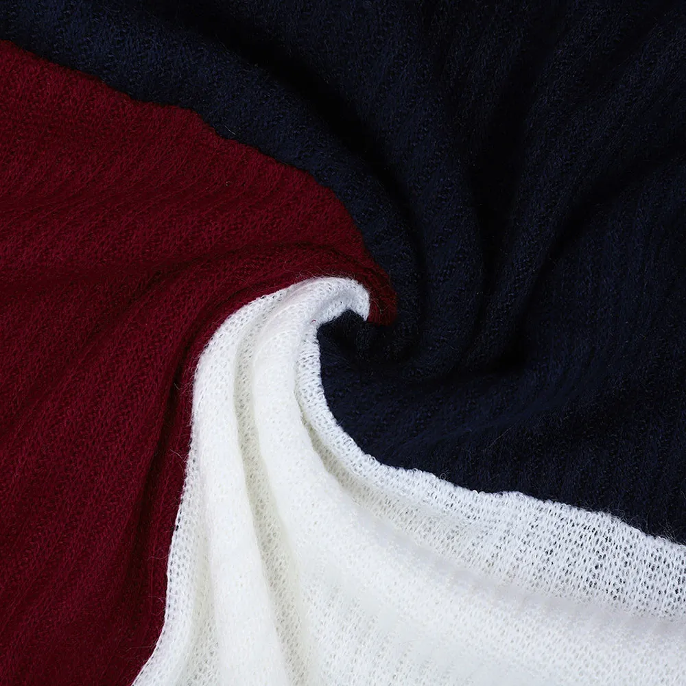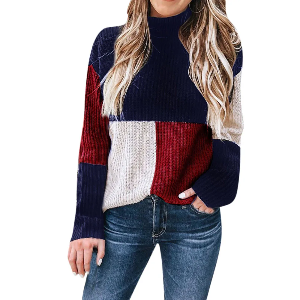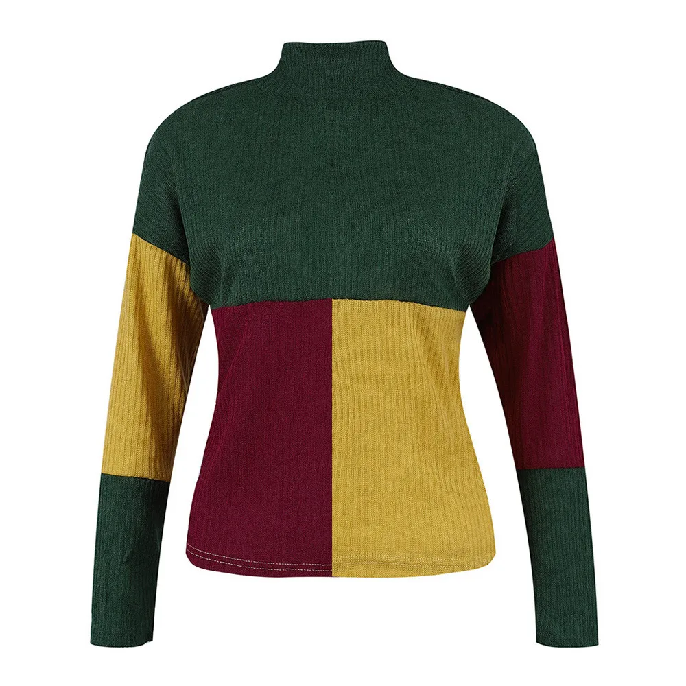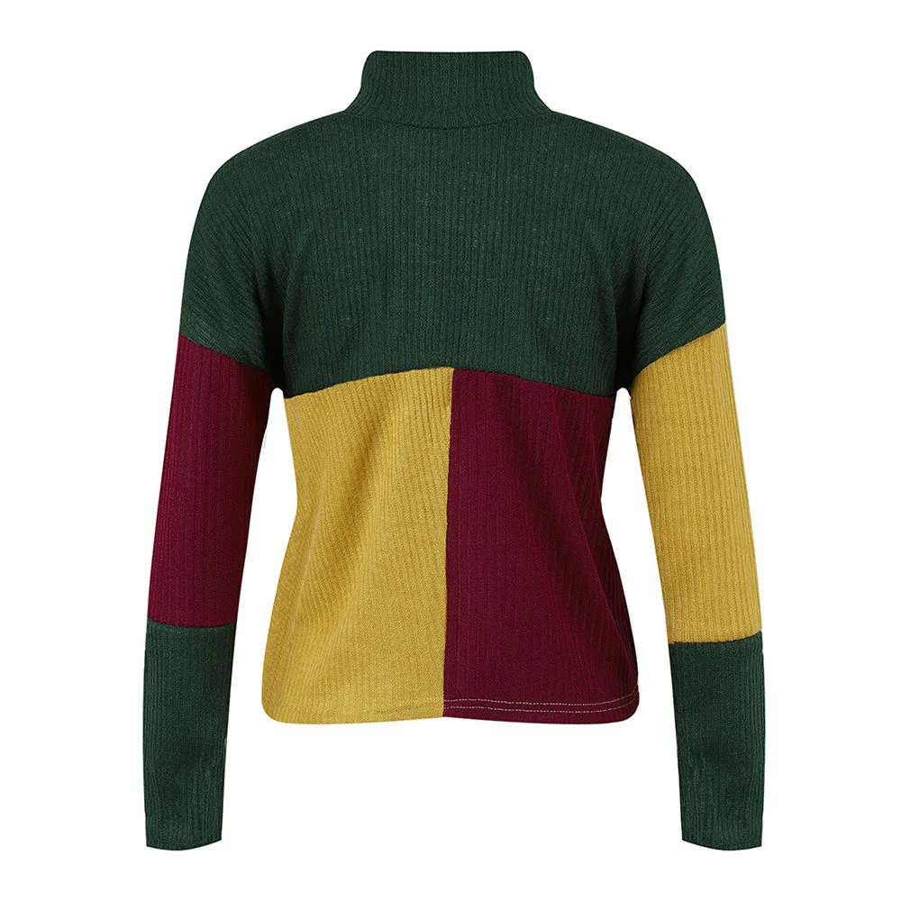 • Women Colorblock Stand Long Sleeve Knitted Sweater Jumper Pullover Top Roupas Feminina Casaco Feminino Saltador Sauteur