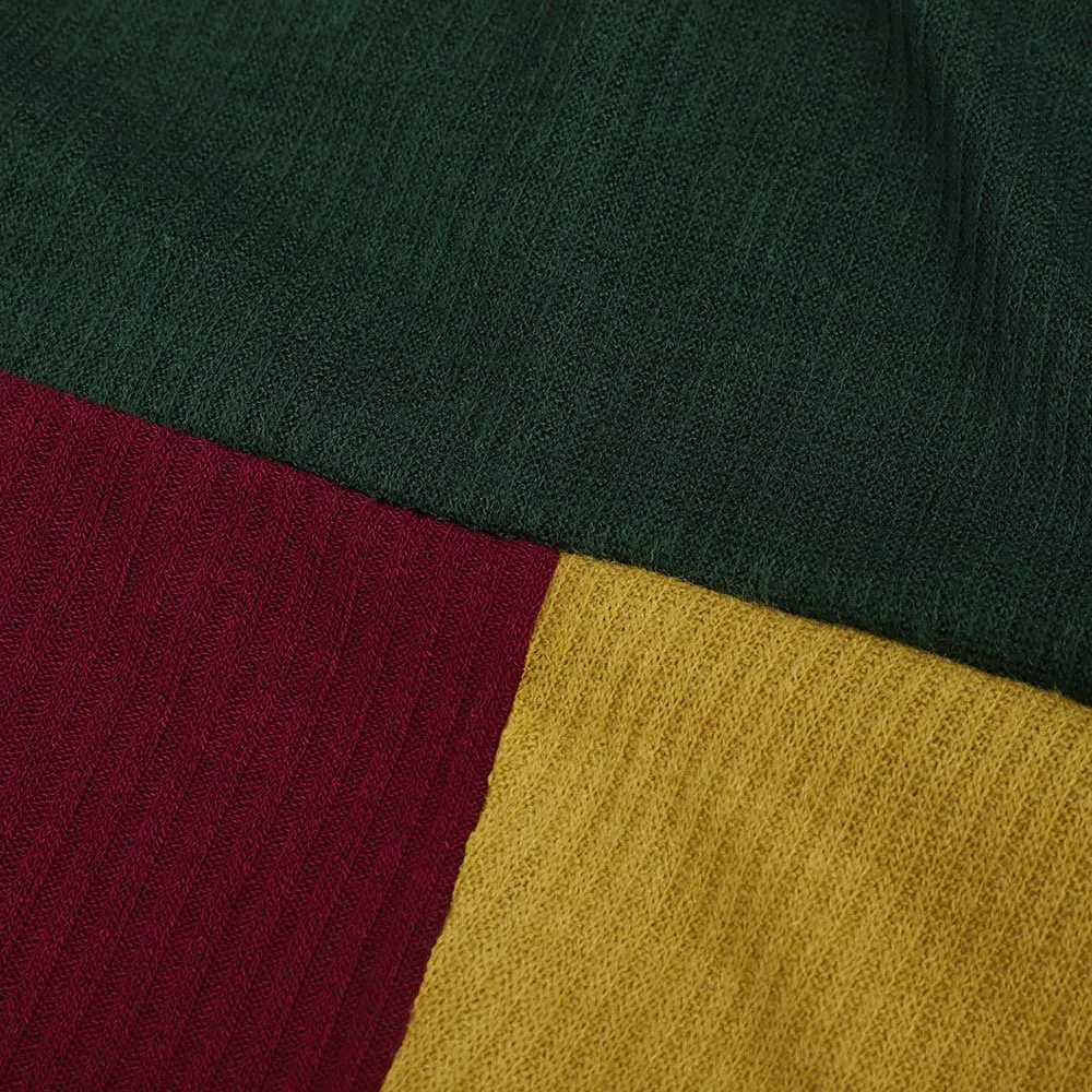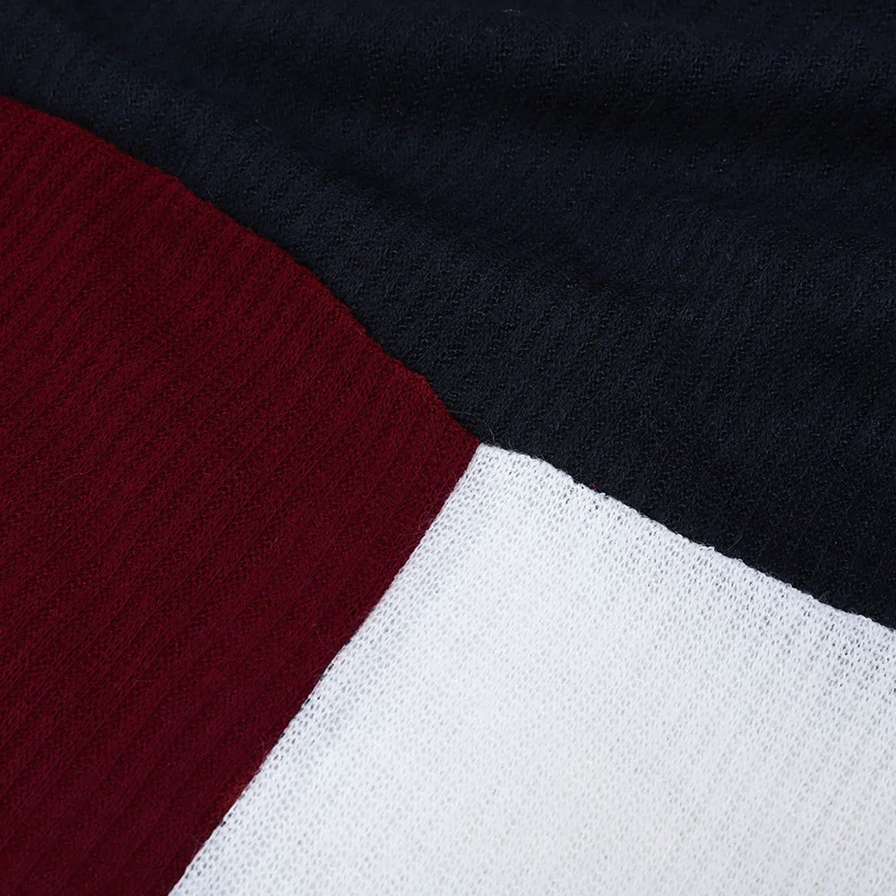• Color-block Stand Long Sleeve Knitted Sweater Jumper Pullover Top