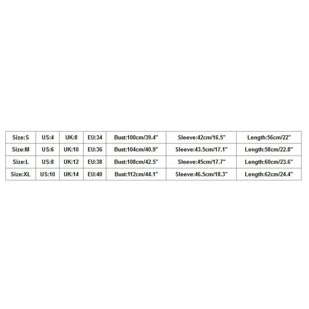 Size US UK EU Bust Sleeve Length